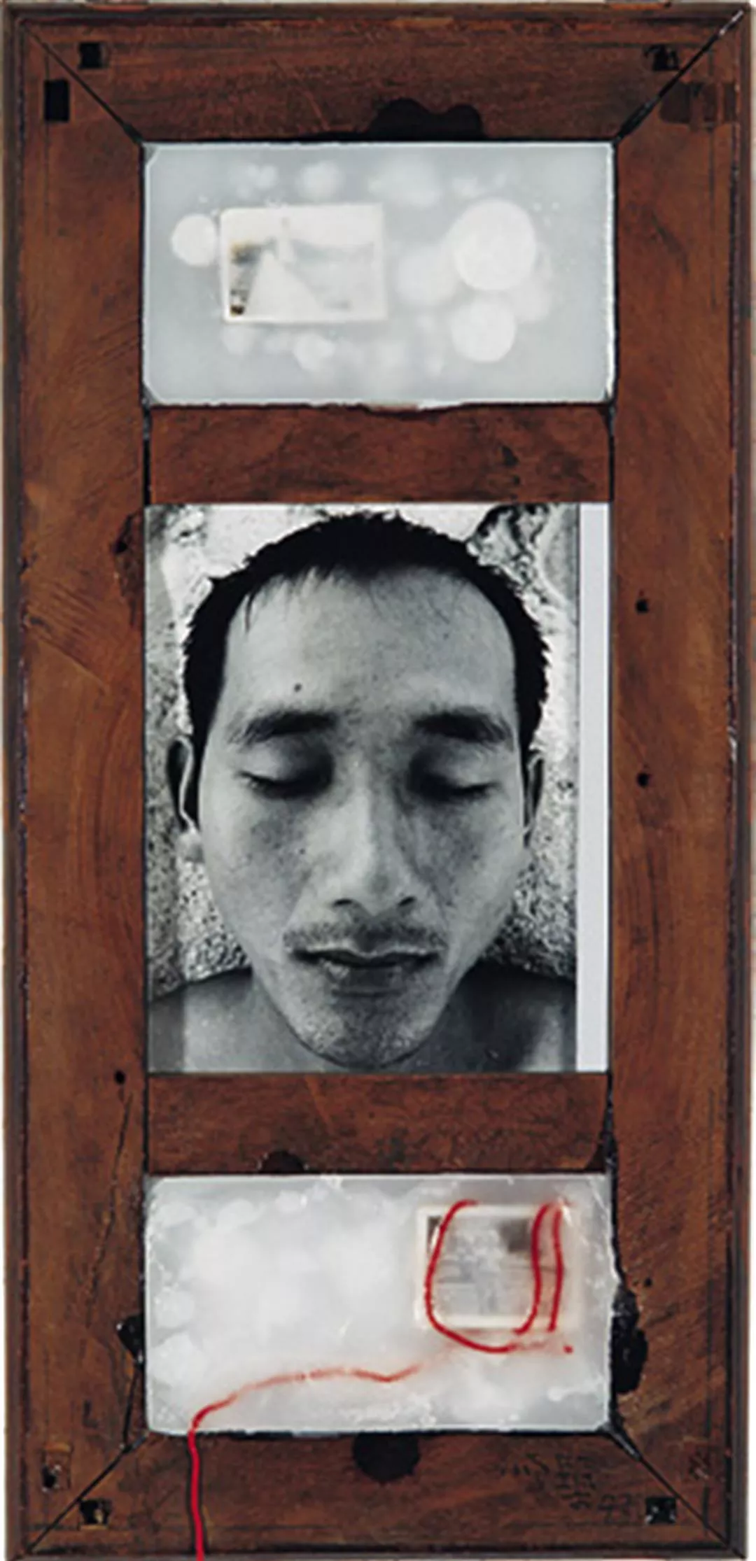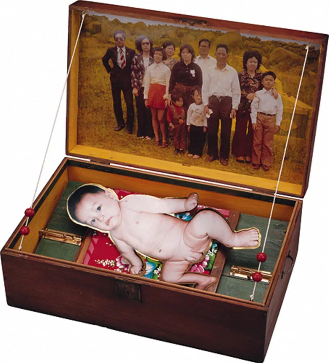 在木盒部分,可視為時隔12年陳順築為父親舉辦的私人安魂儀式。他試圖用自己「現在」的手篩選「過去」的家族老照片,並依自己的美學概念重新排列、拼貼、組合,布置在古董木盒子裡,形成封閉式時光甬道的劇場效果,像是父子間的私密對話。