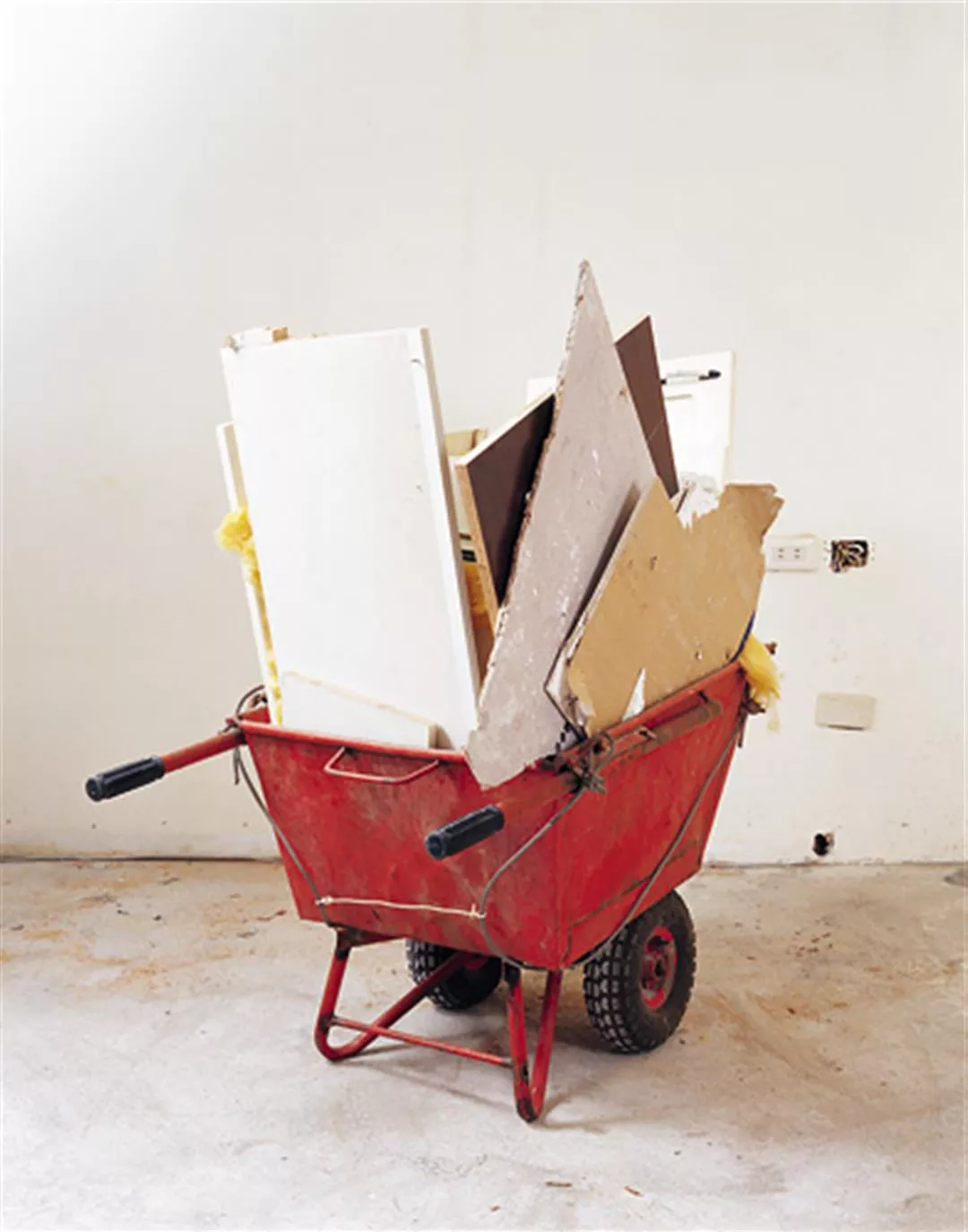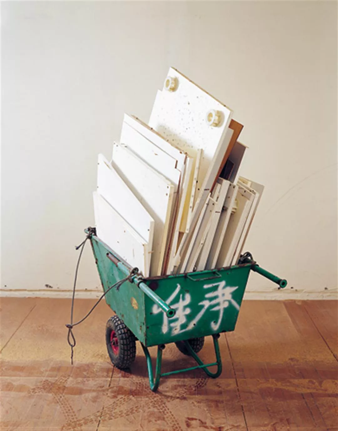 《家宅·四成五立方》紀錄陳順築和妻子裝潢新家的過程,四台堆置著待清運廢棄物的手推車,同時代表了對於舊日家族的「破」與自建小家庭的「立」。