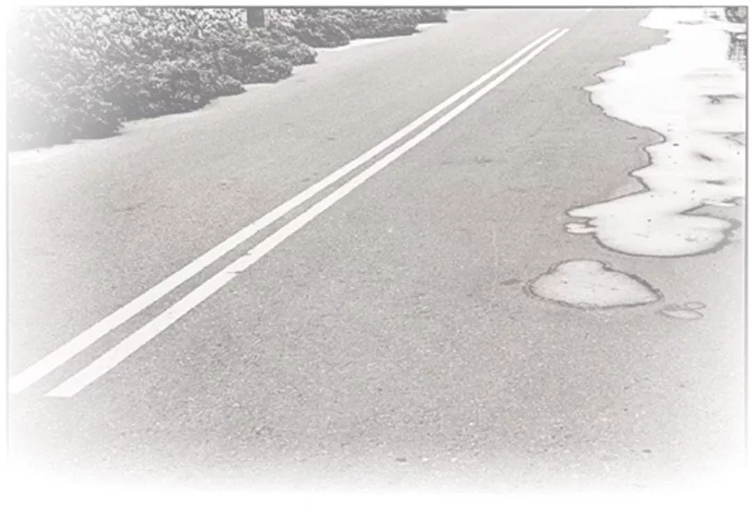 《迢迢路》的57張照片,是陳順築從多年來歸鄉旅途中拍攝的五百多捲底片裡挑選出來的。其中不少晃動失焦或構圖奇特,在傳統攝影美學中會被歸類為「壞」照片,但經過他獨創的收納功夫篩選後,反而呈現出直觀而非刻意的抽象時間感。