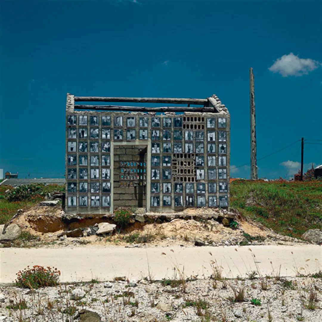 〈澎湖屋II〉以漁夫堆放漁具的廢棄小屋為裝置目標,他將照片掛置於小屋外牆。這間屋子沒有屋頂,窗戶鏤空,地基塌陷,背後一整片藍色晴空,陽光照在金屬相框上,反射出清晰潔白的光芒。裝置看起來像是在澎湖,又像是在西班牙的地中海岸,也有中東沙漠的強烈光線,散發著「去地理化」的特質。