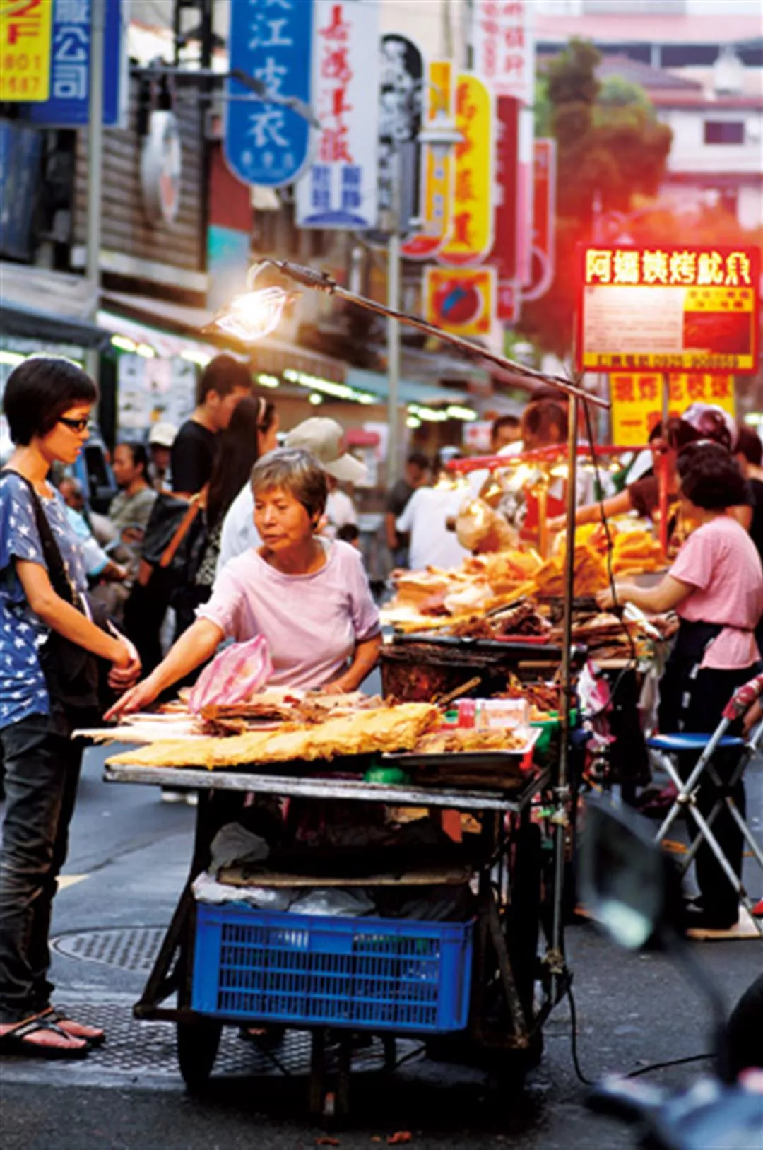 夜市人生的幕後是小販們日夜顛倒、超時站立工作,為生活打拚的成果。據估計,全台夜市攤位約有4.5萬個。圖為台北寧夏夜市。