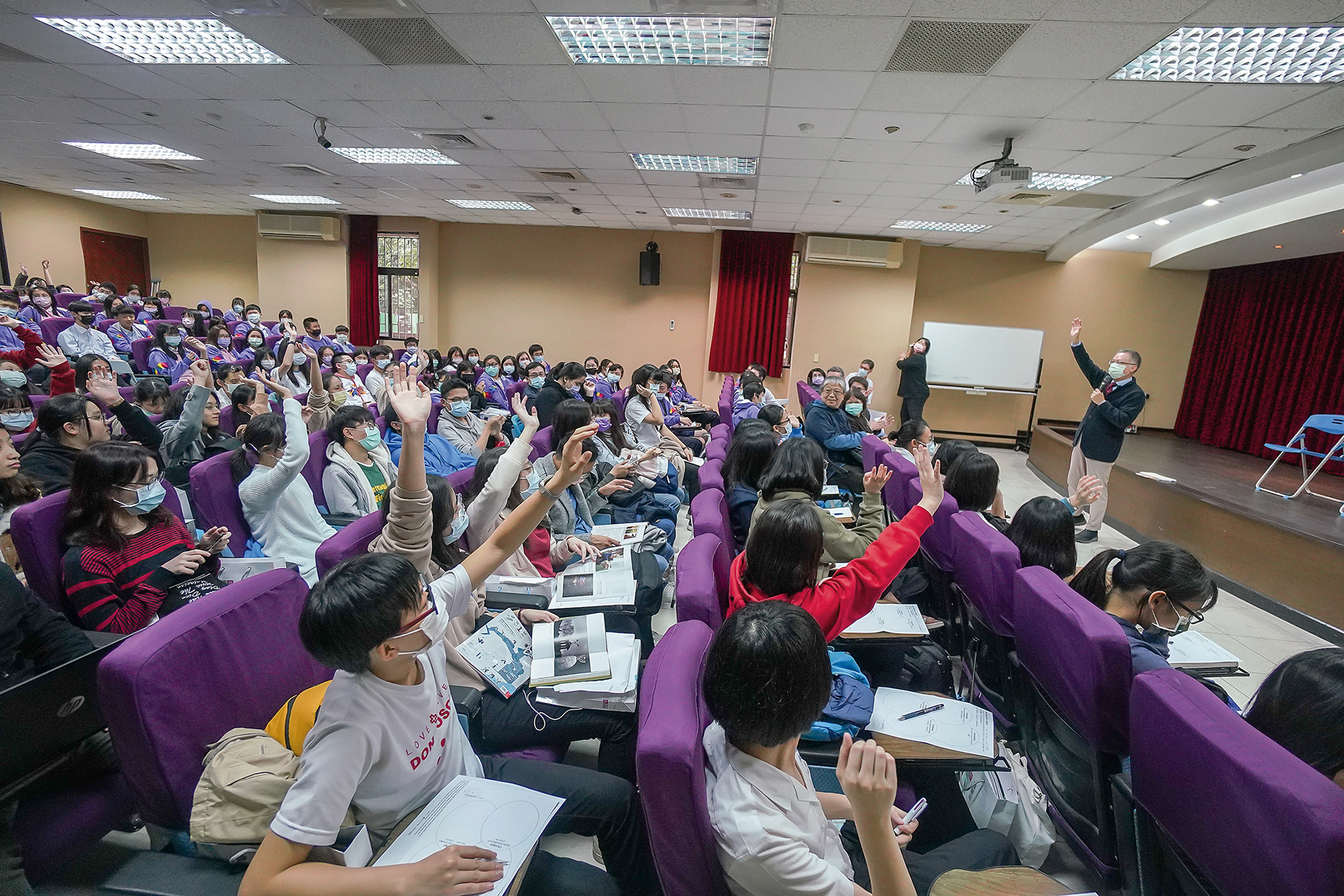 講座當天的貴賓,師範大學文學院院長陳秋蘭則叮嚀,「翻譯不只是一份工作,更有它不同的境界,是一門藝術。」目前研究所開設12學分的翻譯學程,修畢就可考取證照。