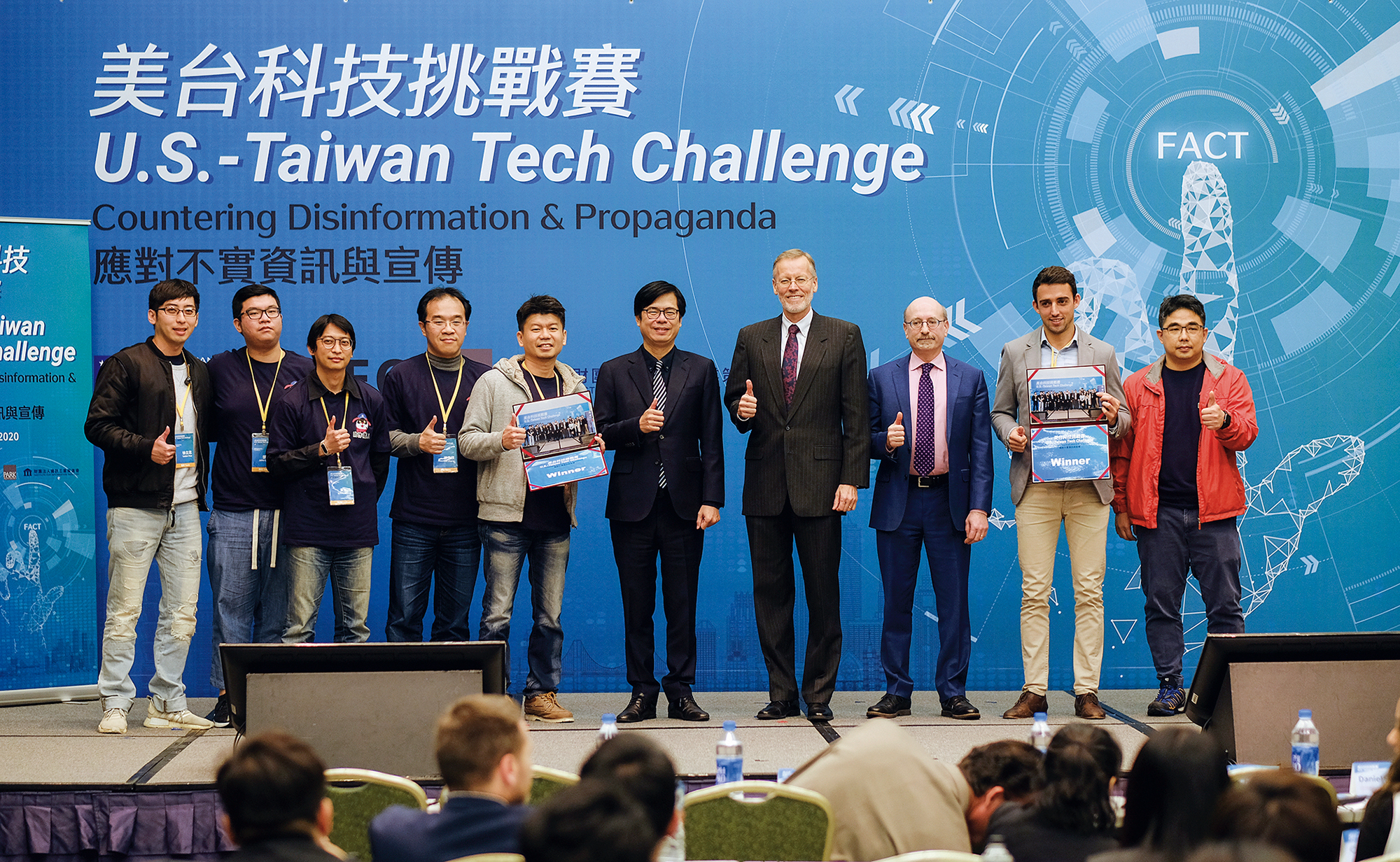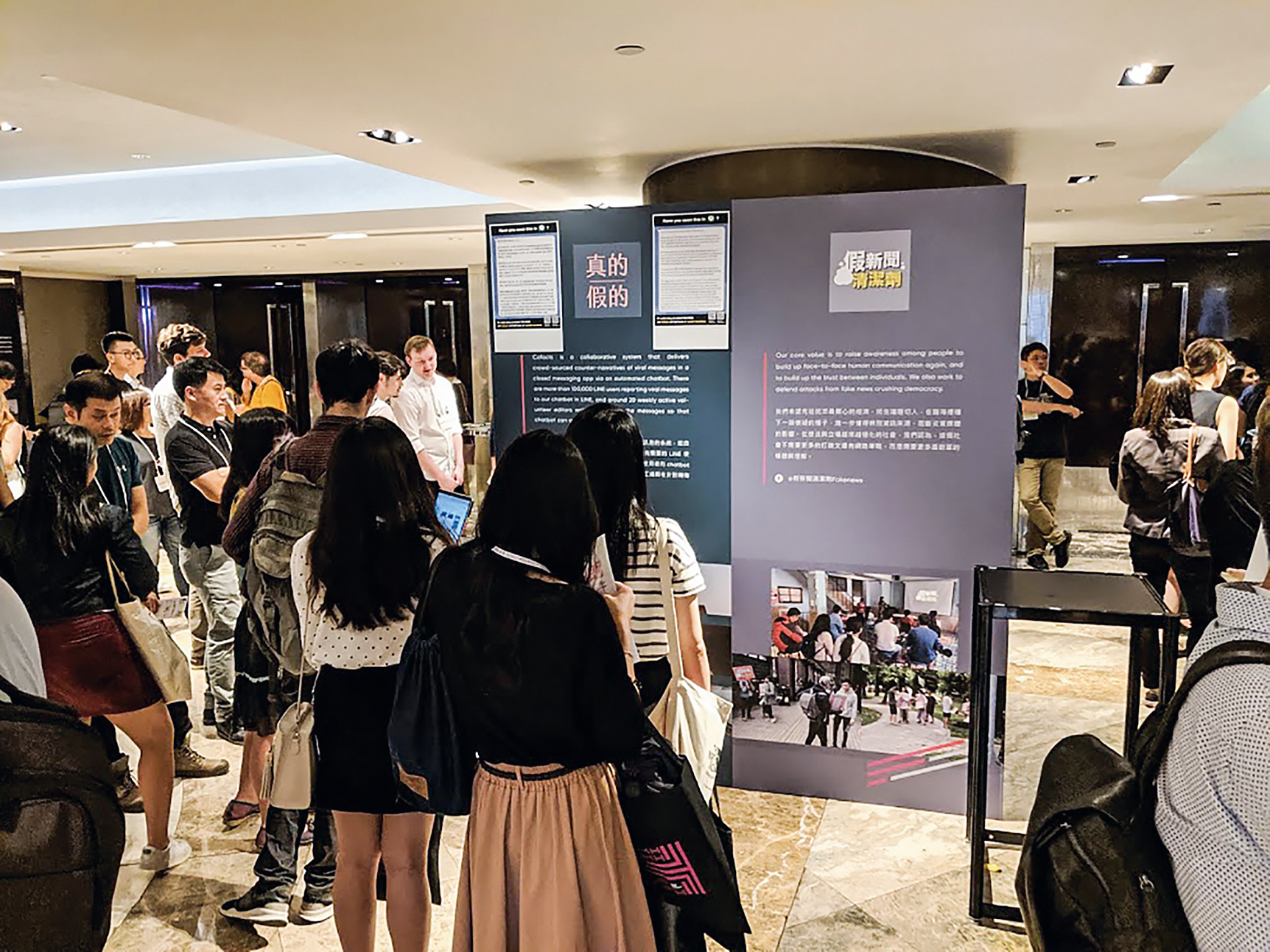 2019年受邀在奧斯陸自由論壇擺攤,Cofacts介紹如何用聊天機器人做新聞事實查核的工作。(Cofacts提供)