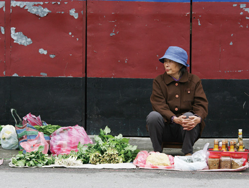 賣菜老婦 文‧林格立 圖‧林格立 2008 4月 EN 分享: 大清早在鳳林街頭,人們開始一天的活動,上班的上班,上學的上學,簡樸勤奮的客家老婦也在路旁擺起了臨時小攤,賣的是自己種的蔬菜,自己做的金桔醬、蘿蔔乾、筍乾、菜乾。 老婦不像其他小販會大聲吆喝,招徠客人,她只是靜靜坐著等待客人上門。一個上午的收入也許非常微薄,但是靠自己的力量賺點零用錢,老婦的內心想必是相當滿足的。 分享: