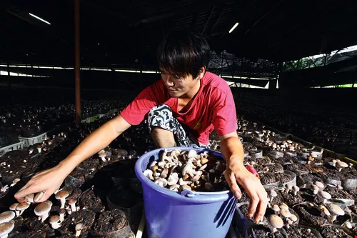 水質清淨、氣候溫和的台中新社台地,是孕育香菇的理想搖籃,密布的菇寮採家庭式經營,平均每戶擁有1甲地。23歲的徐聖傑用心呵護父母傳承的家業,採菇身手一流。