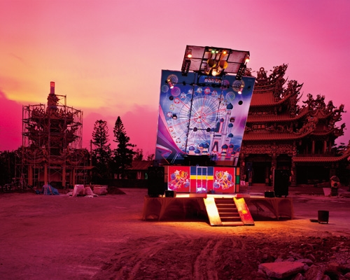 舞台獨白 文‧沈昭良 圖‧沈昭良 2010 10月 EN 分享: 暮色昏暗猶有霞光,宮廟前的綜藝團舞台燈光已經亮起。 雖是暫時落腳,只供一夕歡愉,卻也音箱、布幕俱全, 今夜端出的節目保證秀色可餐,請諸神與鄉親同來賞光! 分享: