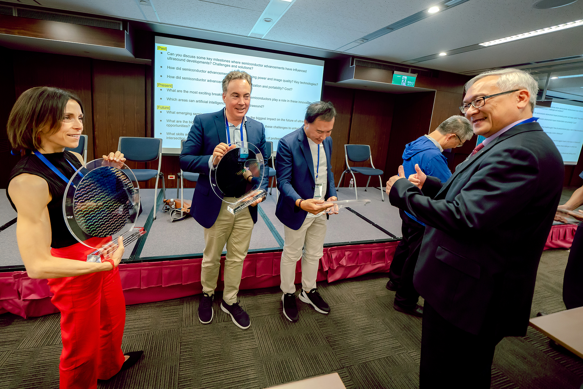 約莫一小時後,兩人才再次被邀請進場,由2017年時任主席Clark T.-C. Nguyen敲錘定音,台灣搶下2024年IEEE UFFC-JS主辦權。
