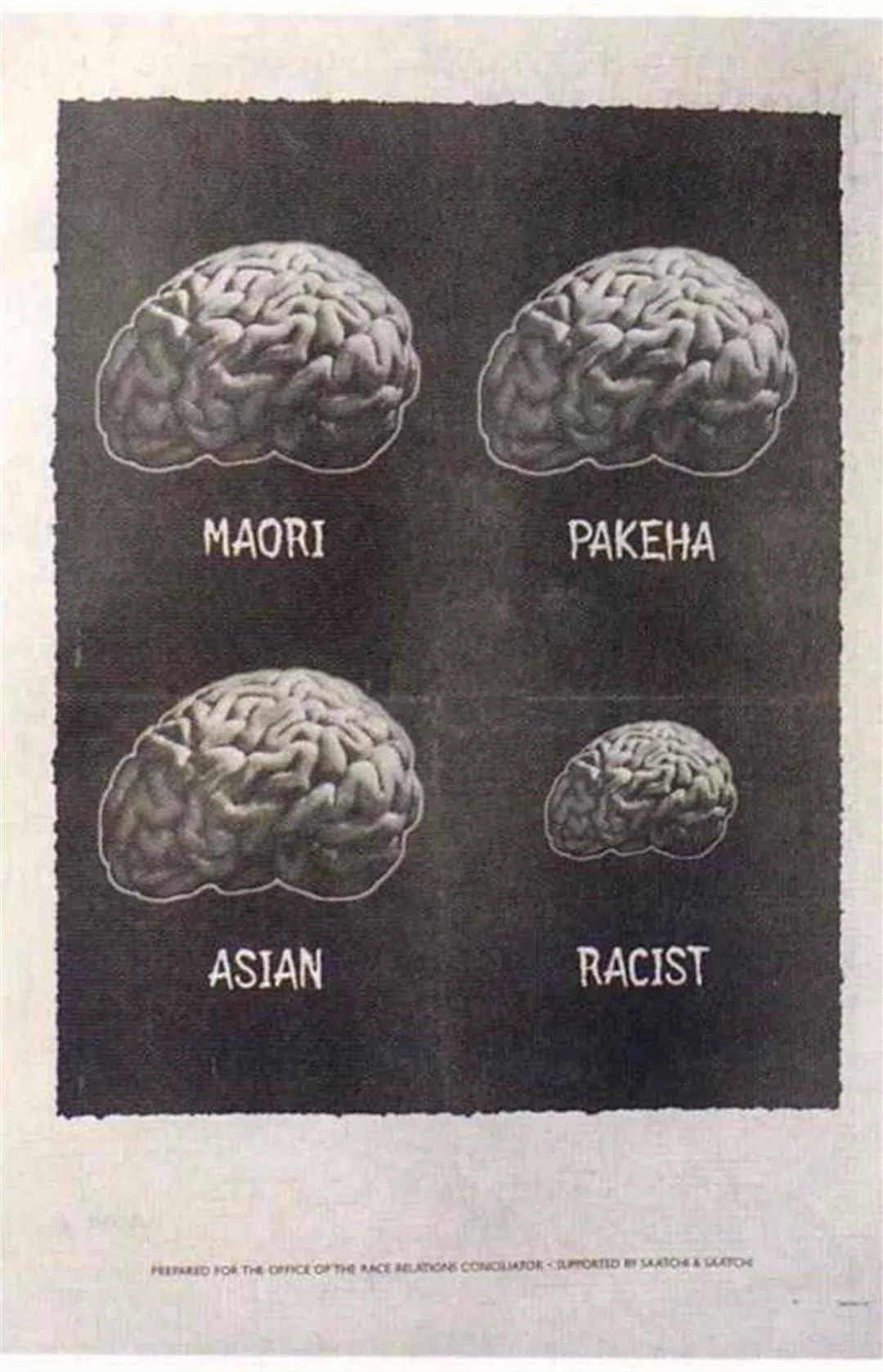 紐西蘭曾因白人與毛利人發生過戰爭,族群關係受創,而對種族問題極為重視。彼得斯對亞裔不公平的言論,被人告到人權組織,種族關係委員會不但「表示關切」,還刊登了一則全版廣告,畫面上只有四個腦,其中三個一樣大,分別標著「毛利人」、「白種人」、「亞洲人」;最小的那一個,則標著「種族主義者」。
