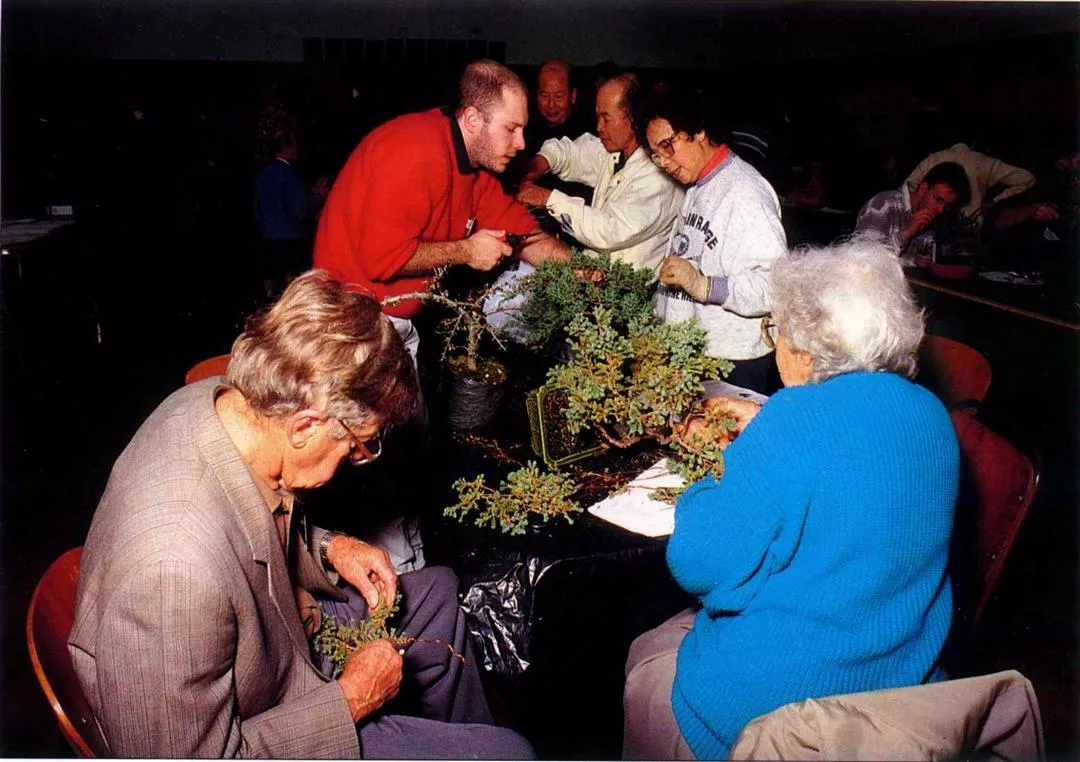 星期三晚上,奧克蘭盆栽俱樂部的聚會來了八、九十位會員,其中絕大多數竟都是kiwi。長桌上,一盆盆榕樹、南天竹、榆樹各展風姿。朱蘊珣跟在老華僑陳先生的身邊,學著怎麼修剪樹形,前任會長鮑伯不時過來指點一番。