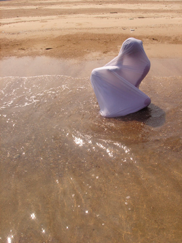 個性大方豪爽的Susu施淑玲跟同為藝術家但氣質迴異的荷蘭裔男友,不約而同愛上都蘭,難以自拔。下圖圍施淑玲在「女妖藝廊」展出的作品〈裹〉。〈施淑玲提供〉