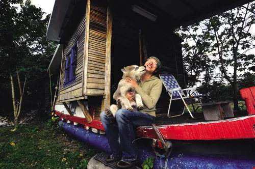 游麗純與親密伴侶王家祥(左)一路相伴成長,越活越有滋味。右頁:為了讓「動物家人」們可以享有無拘無束的活動空間,兩人在都蘭的真正「居所」乃是一艘架設在曠野中、可移動的船屋。