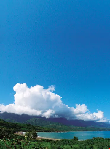 東海岸海天一色的遼闊美景,孕育了開闊自由的人文氣氛,也成為「女性勢力」凝聚綻放的最佳舞台。圖為從台11線濱海公路上眺望都蘭山脈,行過這片海灣就會抵達都蘭村。