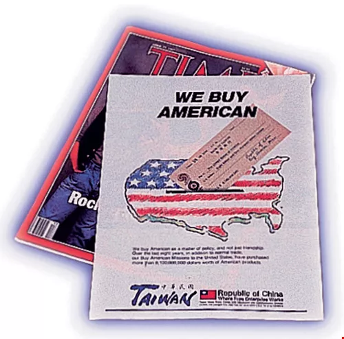 1987年,「我們買美國貨」是新聞局最早製作的議題廣告,以台灣向美國擴大採購為主軸,強調台灣平衡中美貿易順差的努力。