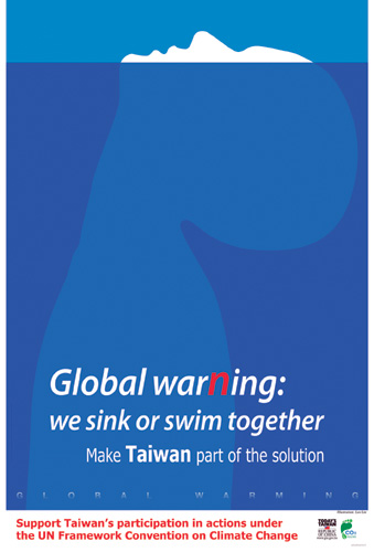 如今在地球村的緊密連結下,傳染病和氣候變遷議題,更需要跨國合作;2011年UNFCCC(聯合國氣候變化綱要公約)的締約國大會在南非召開,新聞局製作了「全球暖化」廣告,採用台灣師範大學視覺設計系教授林俊良的得獎圖案,強調全球暖化造成冰山融解、海平面上升,將威脅人類生存;台灣雖非UNFCCC成員,仍願貢獻心力,與國際社會共同尋求解決之道。