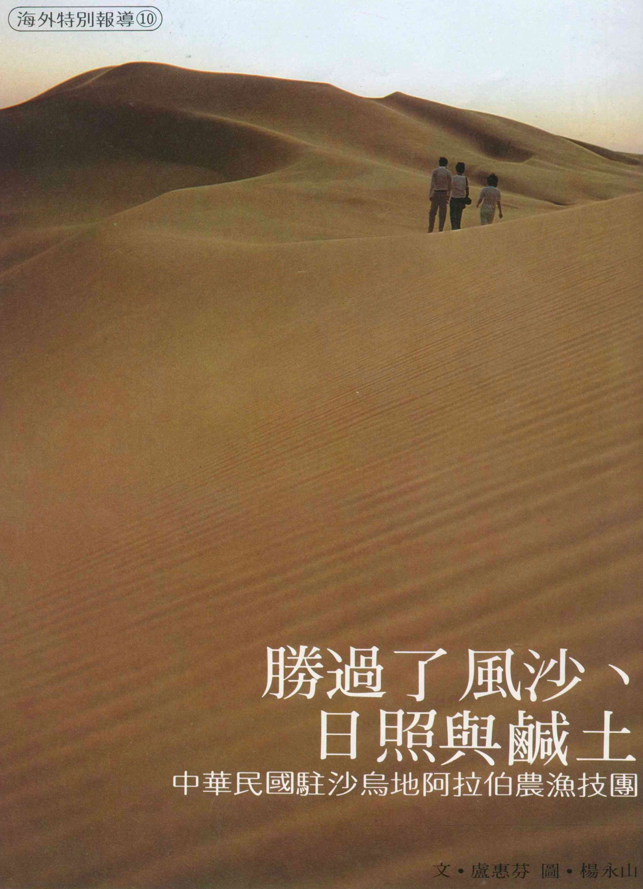 由於在沙工作的國人較多、從事的範圍也較廣,本刊將分兩次報導他們的工作近況。本期首先介紹的是,最早抵達沙國、為中沙友誼埋下第一顆種籽的農業技術團,及同樣以農民為服務對象的漁業技術團。
