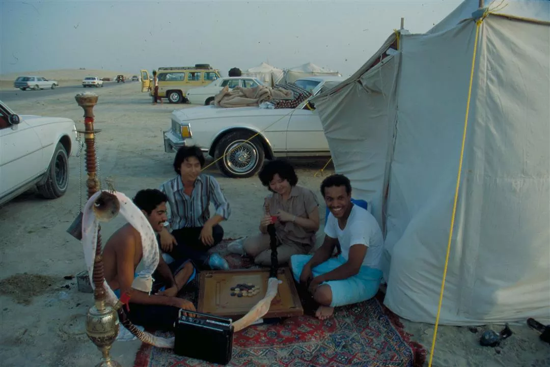 沙國人很喜歡在海邊露營。在海邊聊天、下棋、聽音樂,吸阿拉伯大煙,他們視作最大的享受。(楊永山)
