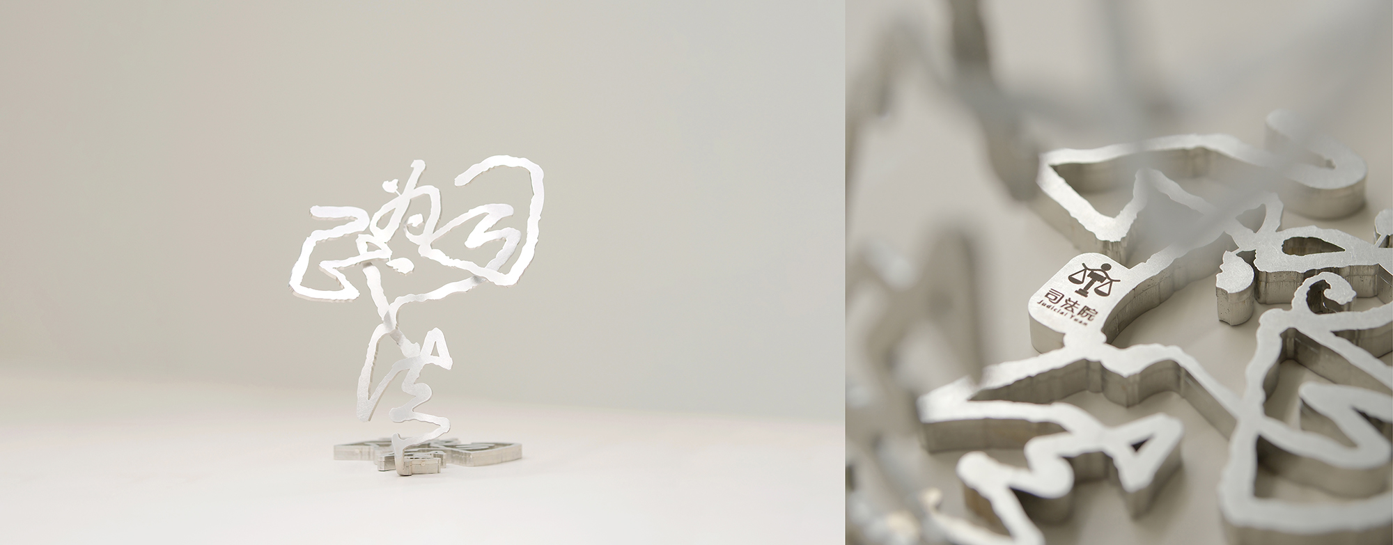 朱多棣將父親的〈司法為民〉立體化為紡錘狀天秤雕塑,象徵公義與平衡。小型版本成為司法院贈禮,使藝術融入公共生活。