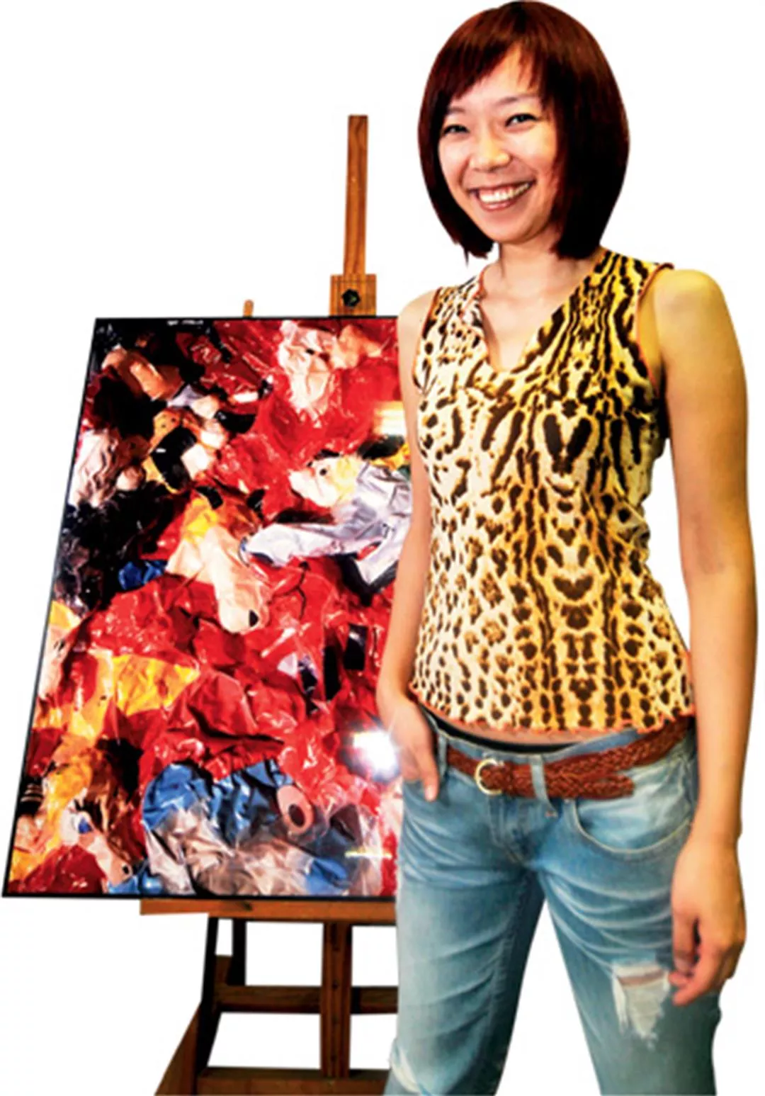 陳怡潔31歲,已經舉辦過11次個展。她獨創「色彩同心圓」的符號語彙,還發展出「卡通解碼」與「網路介面」兩個創作脈絡,獲得好評。