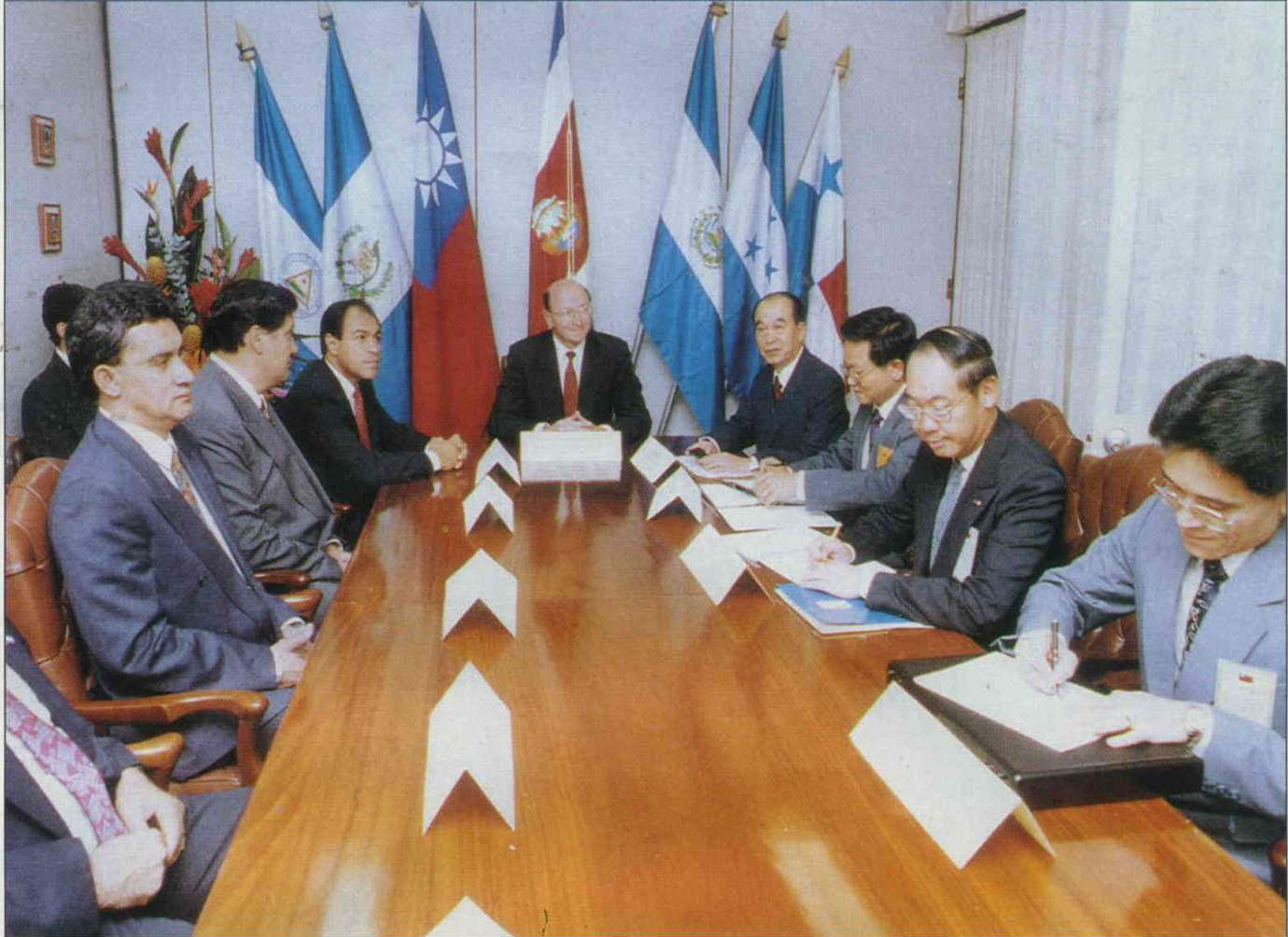 副總統李元簇(左四),與外交部長錢復(左二)今年在哥斯大黎加進行磋商。(葉銘源攝)