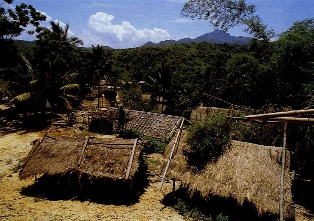 (右)少數民族苗族居住草屋。