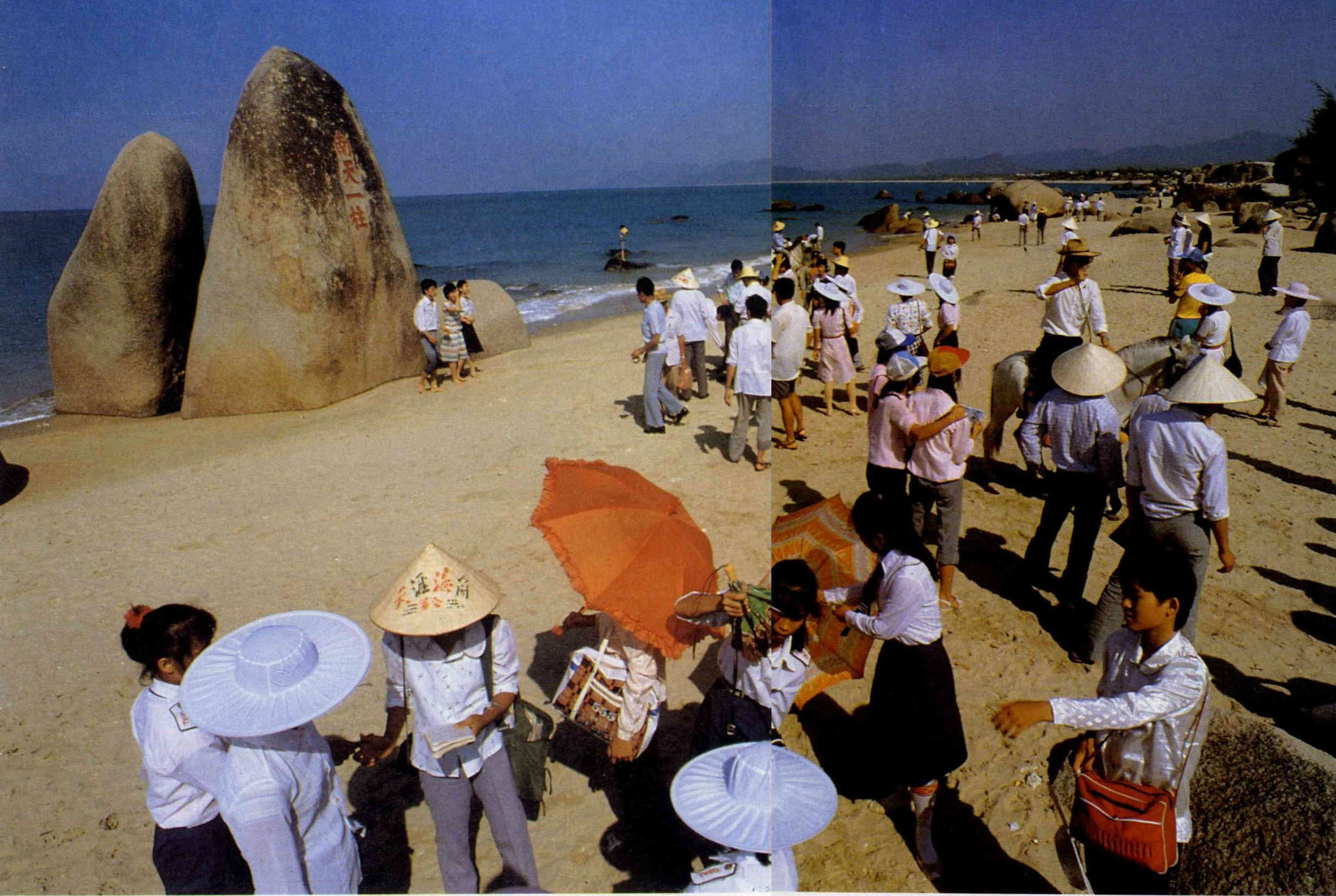 海南島全島海岸線長達一千五百公里,共有六十四個沙灘,由於多未經開發,椰林廣佈,保持相當完整的熱帶原始風貌。中共總理趙紫陽在巡視海南島時,即認為該島有發展旅遊的潛力,尤其對南岸的牙龍灣印象深刻。