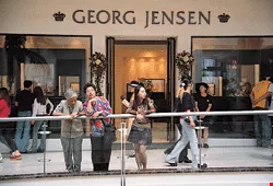 全球化浪潮下,台灣消費者在國內就可買到世界名牌商品。圖為以銀飾器具、項鍊、手錶聞名的哥本哈根名牌喬治•傑生於微風廣場設立的專櫃。