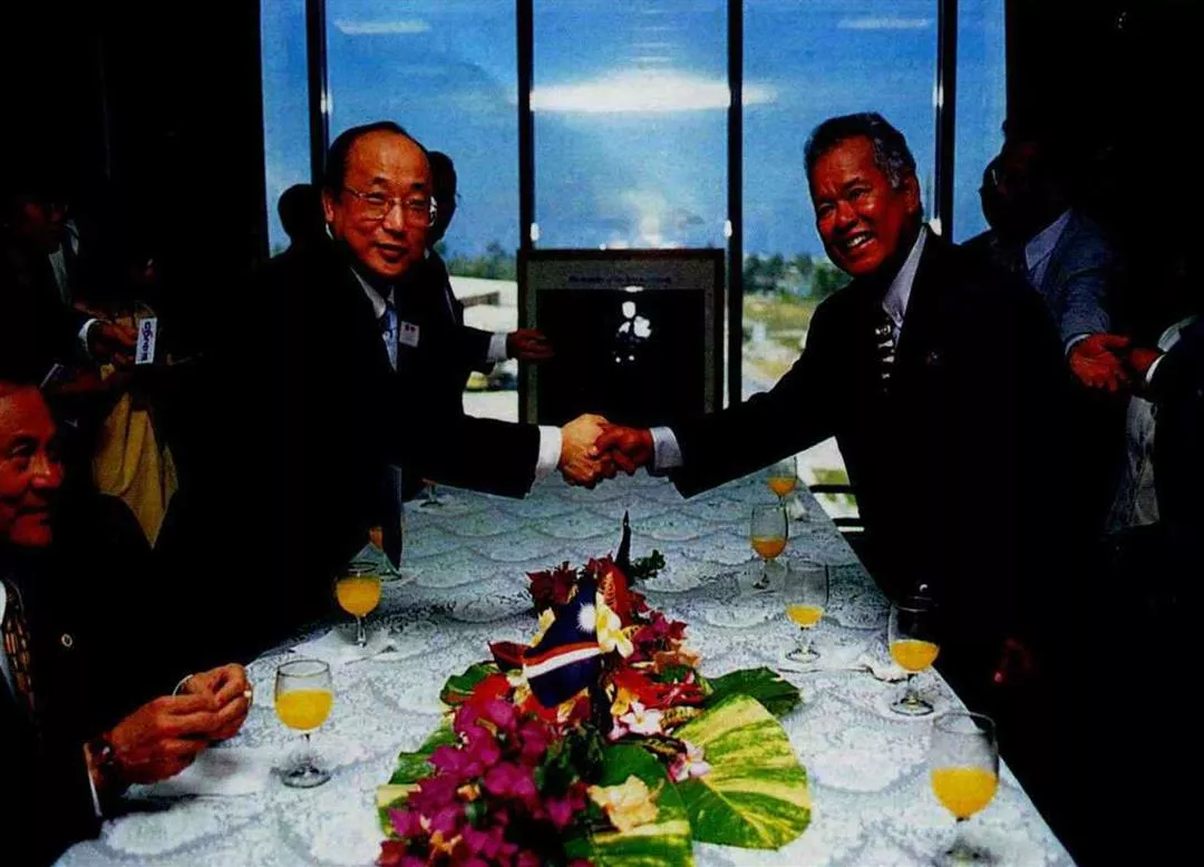 今年四月底,外交部長胡志強率團拜訪馬紹爾,受到馬國總統卡布亞熱情款待。(邱瑞金)