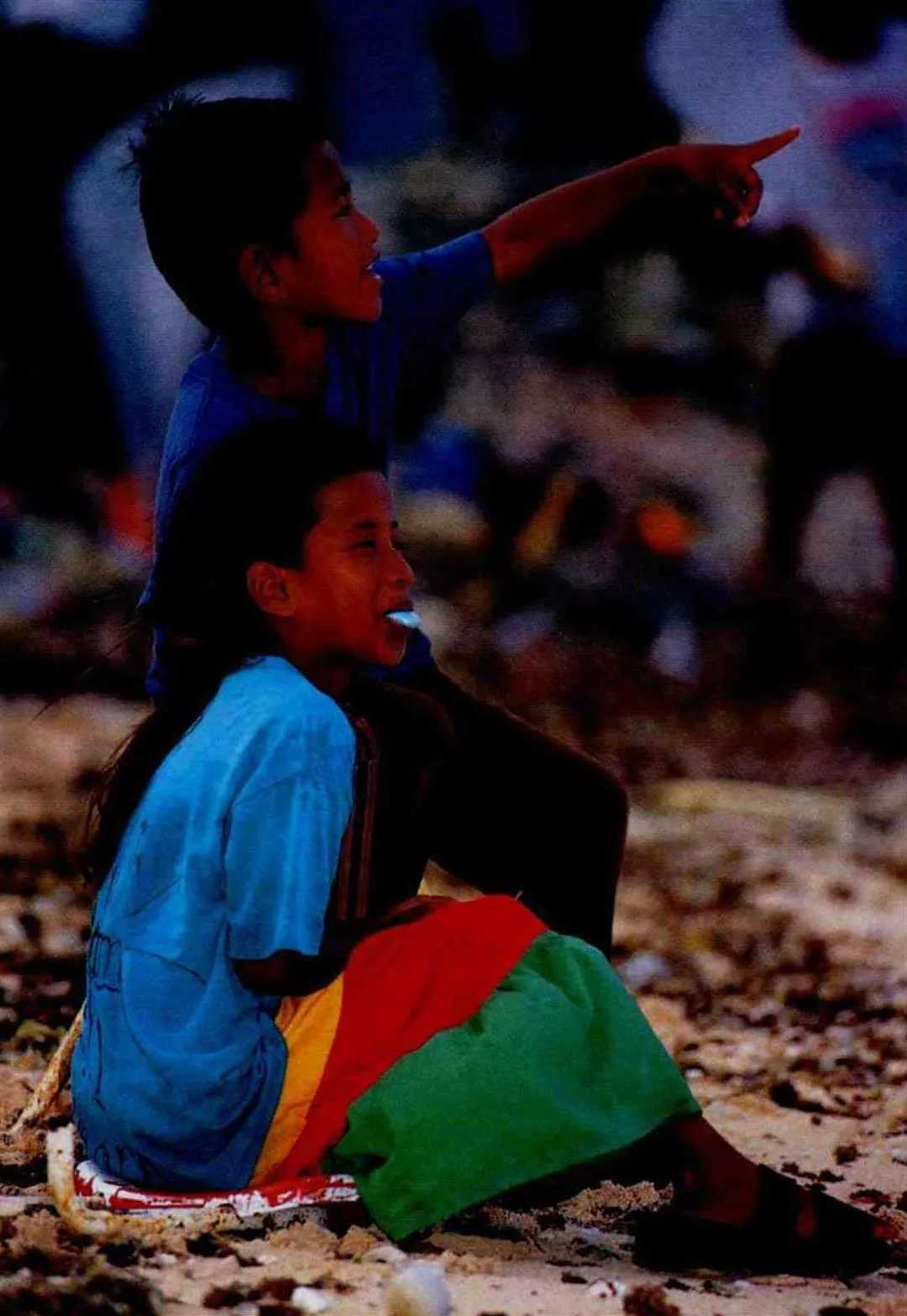 夕陽悄悄抹紅海邊的天空,跨國友誼將為下一代開闢更廣闊的人生。(邱瑞金)