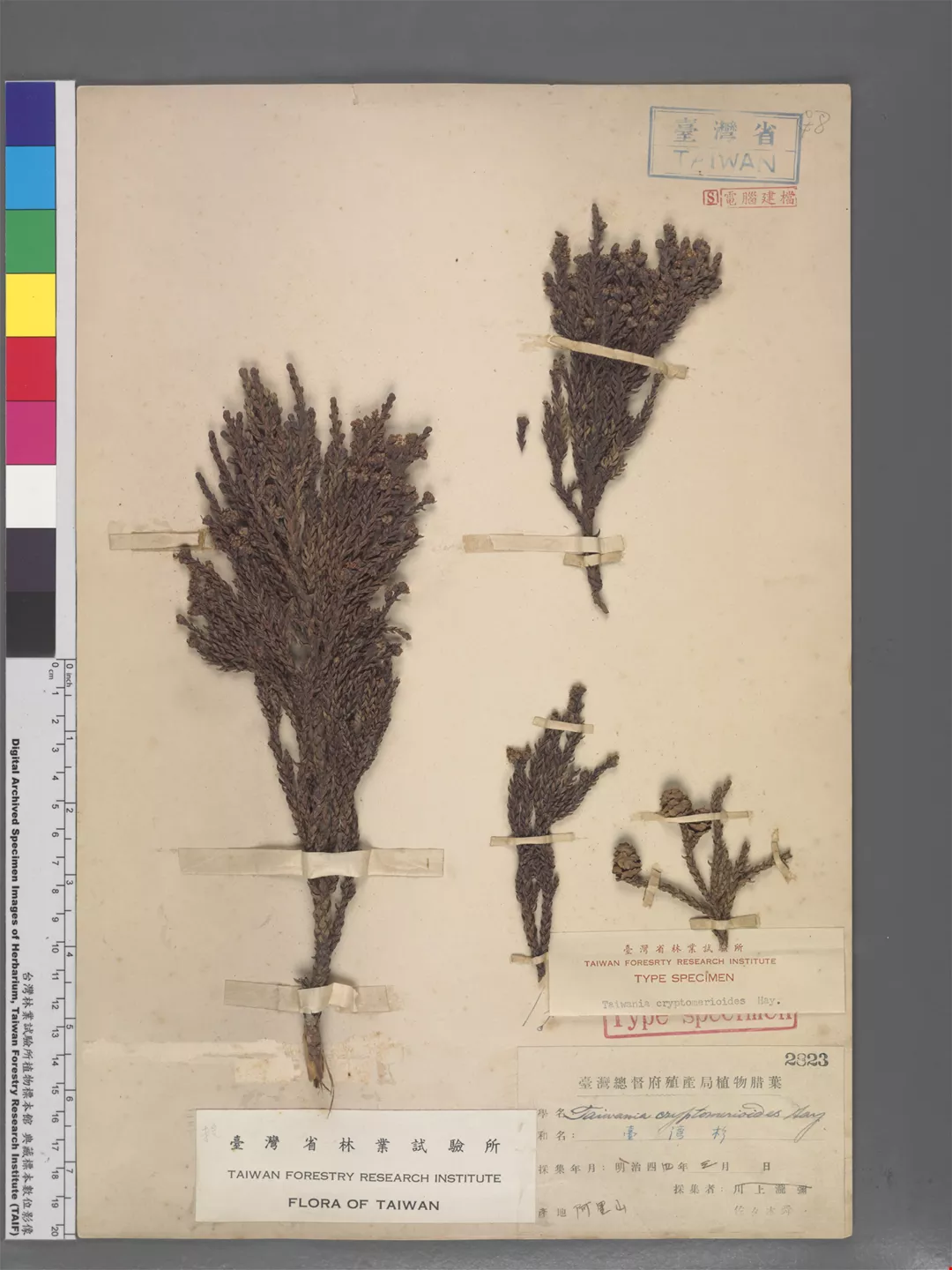 由早田命名,林試所典藏的台灣杉模式標本,極其珍貴。