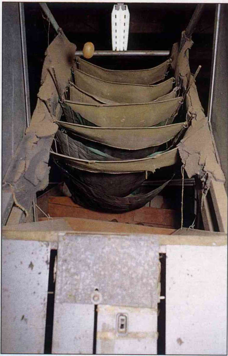 這部古老的水果分級機已經進入博物館。把一顆顆奇異果往上拋,重的落點近,輕的落點遠,如此就可以分出大小等級了。
