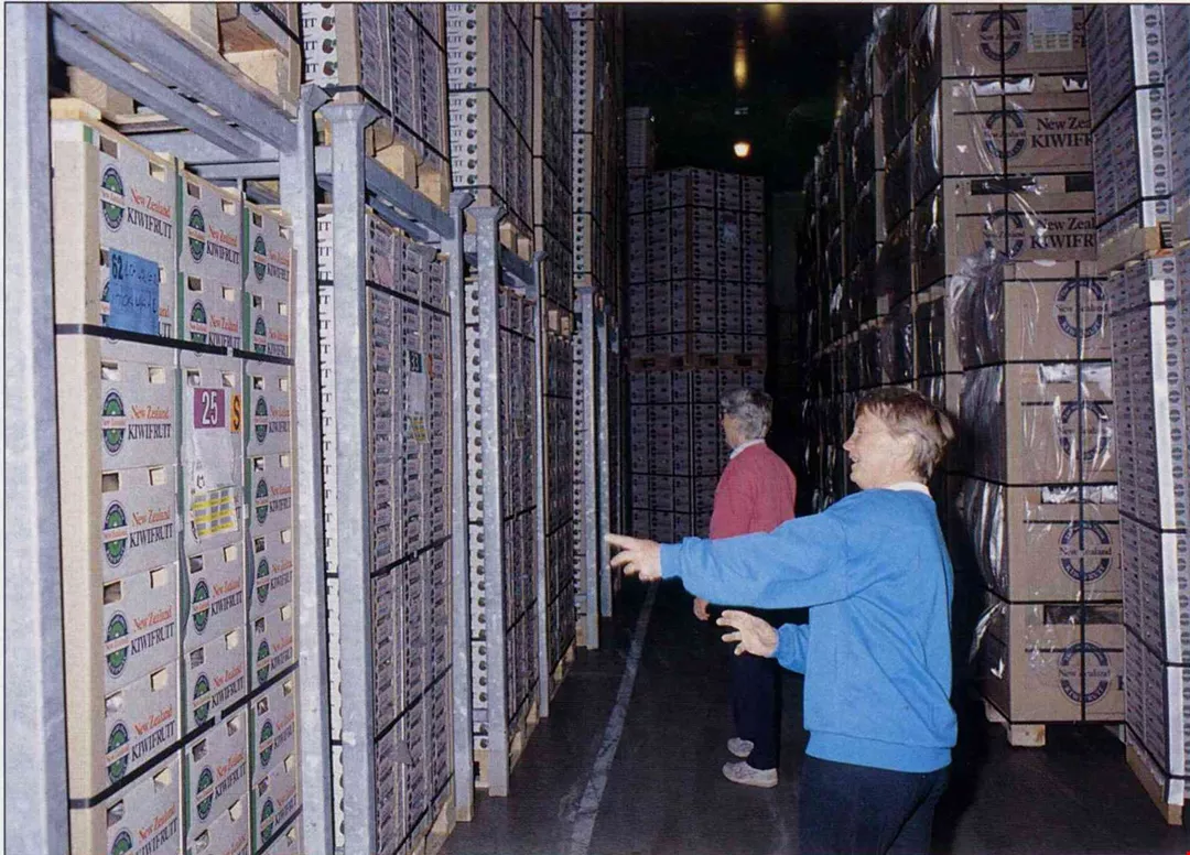 冷藏廠的溫度常保攝氏零度,奇異果放在裡面,鮮度可以維持半年,藉此保持市場的貨源分散,價格穩定。