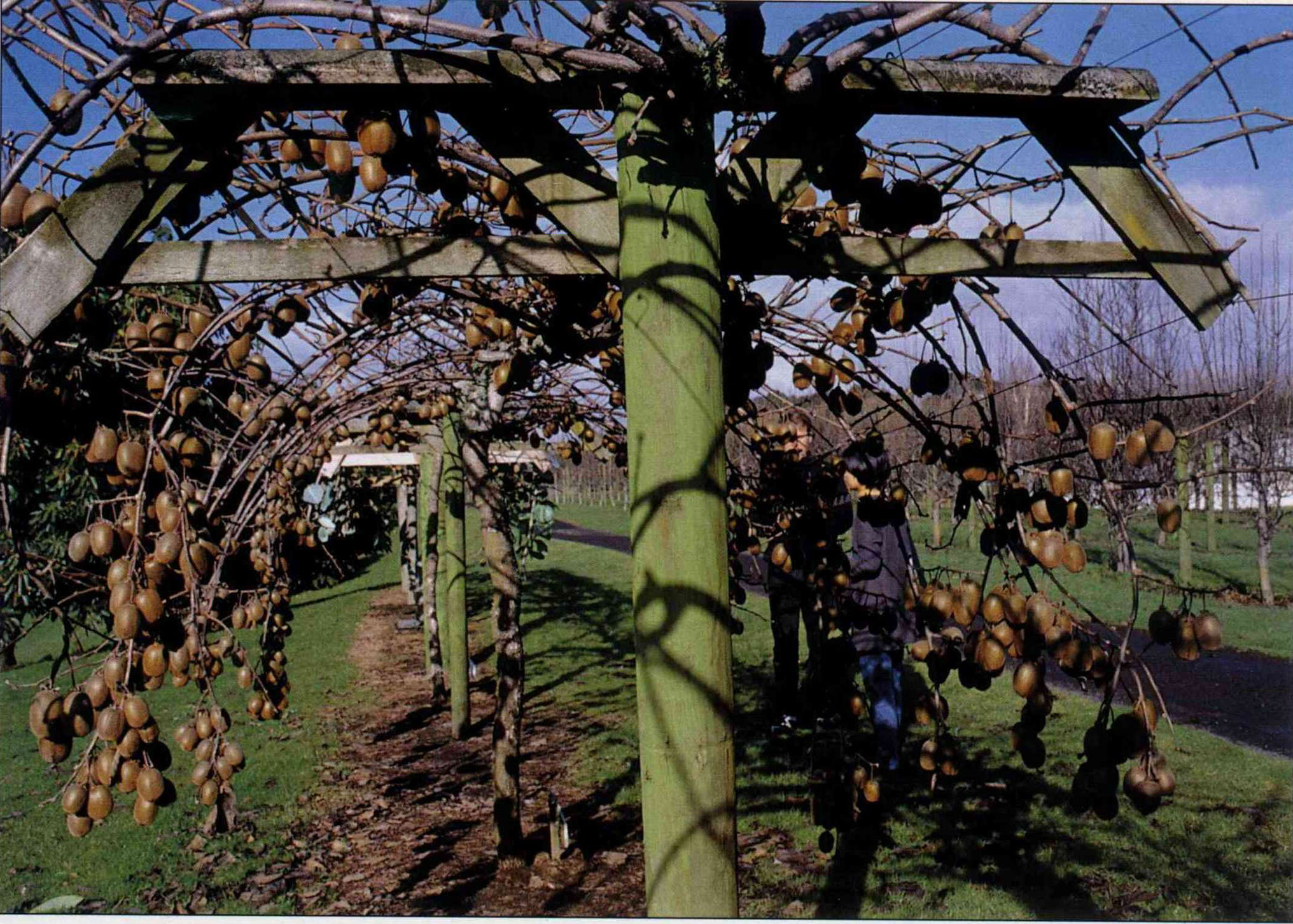 在紐西蘭,T型棚架是奇異果極常見的栽種方式。