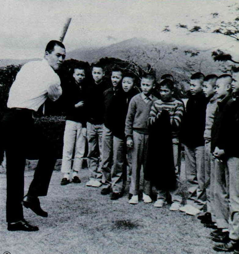 圖5:民國六十一年,王貞治到華興中學訪問,示範他最拿手的「稻草人式打擊法」。(鄭元慶)