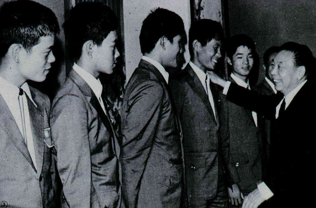棒運發展的歷史鏡頭。圖1:民國六十一年九月,當時的行政院長蔣經國先生接見榮獲世界冠軍的美和青少棒球員。