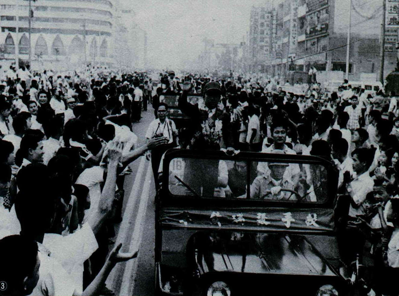 圖3:民國五十八年,金龍少棒隊首度獲得世界冠軍返國,歡迎的人潮幾乎把車隊淹沒。(鄭元慶)
