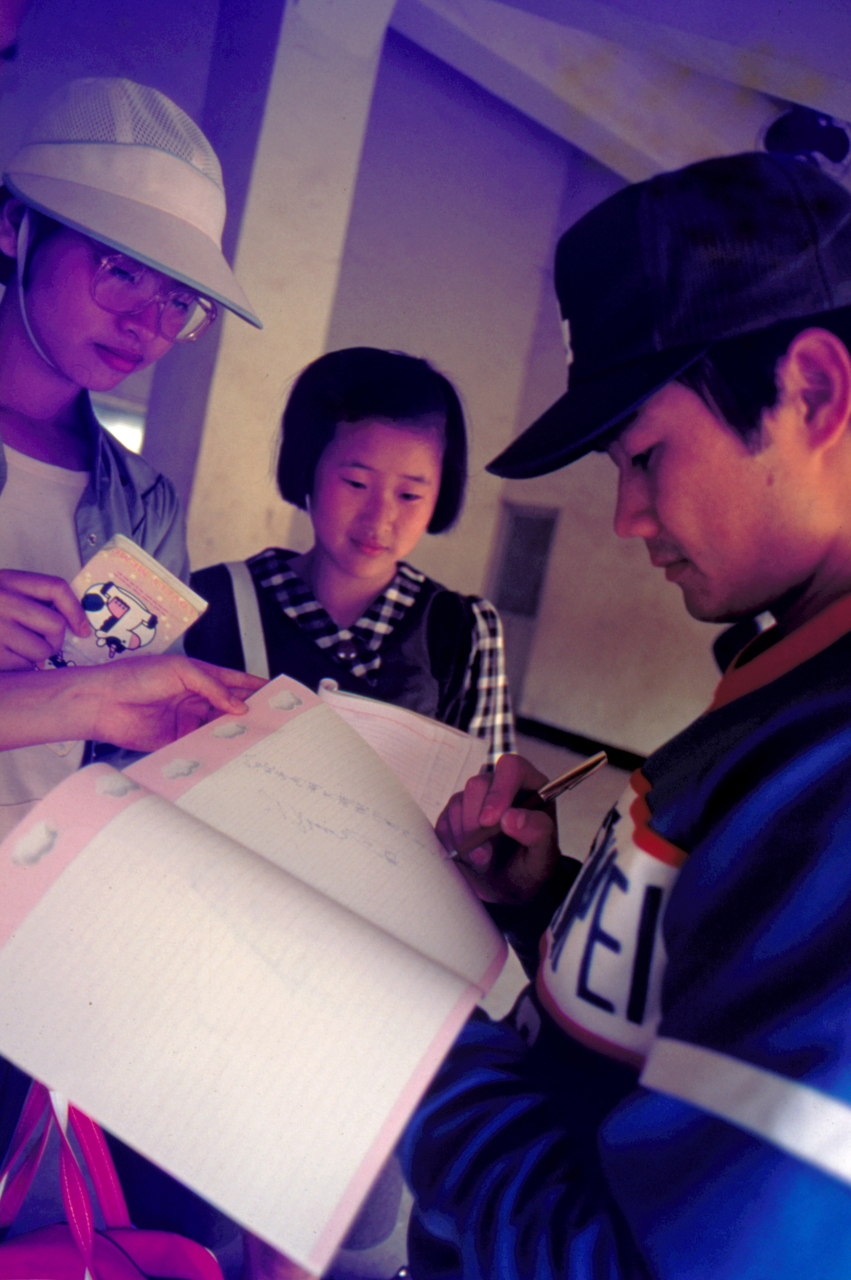 圖2:中華成棒隊的當家投手莊勝雄(圖右),為球迷簽名。(鄭元慶)