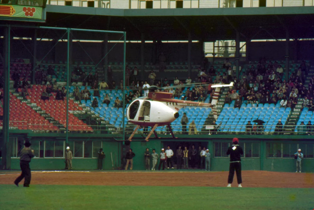 圖3.為比賽期間陰雨綿綿,動用直升機吹乾場地。