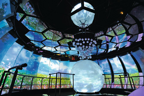 2010年台北國際花卉博覽會夢想館二廳裡展示的投影科技效果,由琉璃奧圖碼所贊助,畫面精緻炫麗。