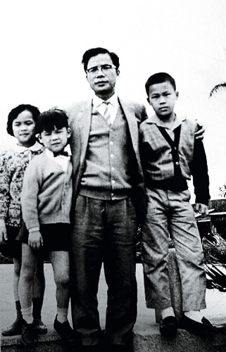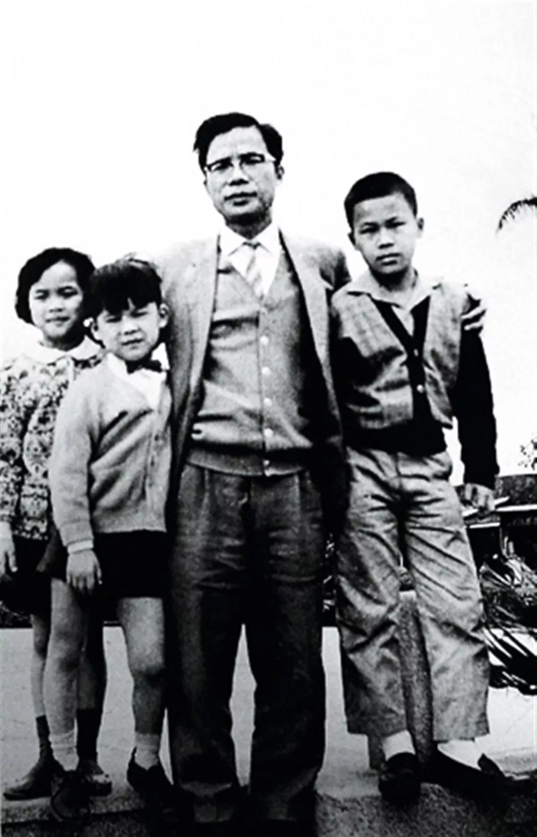 羅大佑(左二)和兄姐及父親合影。正如台灣典型的醫生世家,羅父對孩子的音樂教育十分注重。
