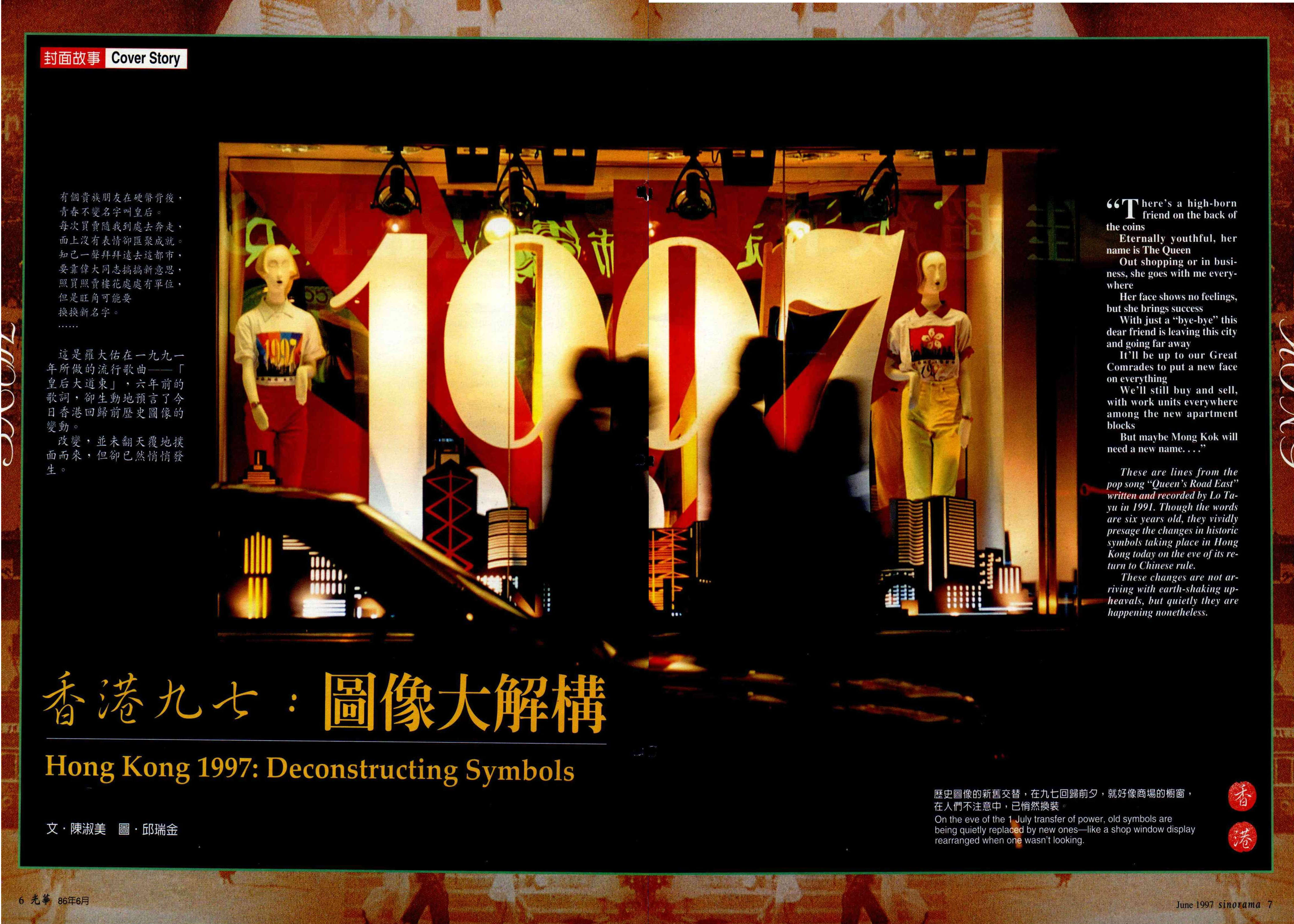 歷史圖像的新舊交替,在九七回歸前夕,就好像商場的櫥窗,在人們不注意中,已悄然換裝。(邱瑞金)