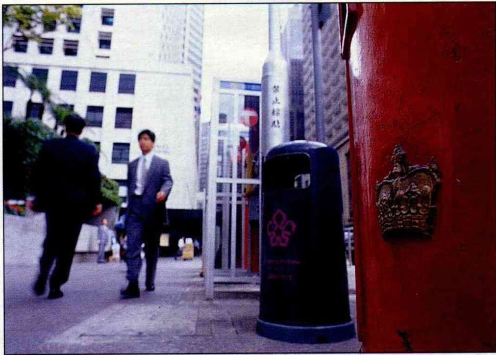 炒作,也因為即將消失,此景不再。女王頭郵票,貼有英國皇冠的郵筒,以及印有「皇家郵政」的郵車,在七月一日之後,都將面臨改變的命運。女王頭郵票將被換成香港海旁風景,皇家郵政的字樣塗去,郵筒上的皇冠標誌,能拆即拆;皇冠與郵筒一塊燒鑄,不可能拆卸的舊式郵筒,中方已經同意,將把皇冠用紅油漆遮掉,換上新徽號。新徽號將是郵票型的方塊設計,上面加一個英文「p」 字,代表「post」 郵政之意。此徽號十年前已經小範圍使用,七月一日起將大量使用。至於當時設計時,為何不乾脆用中文的「郵」字,「十幾年前還沒想到『中國特色』的問題,」郵政署說。