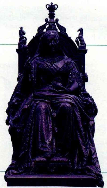 維多利亞公園的女王塑像已經修復,如今仍然安坐。(邱瑞金)