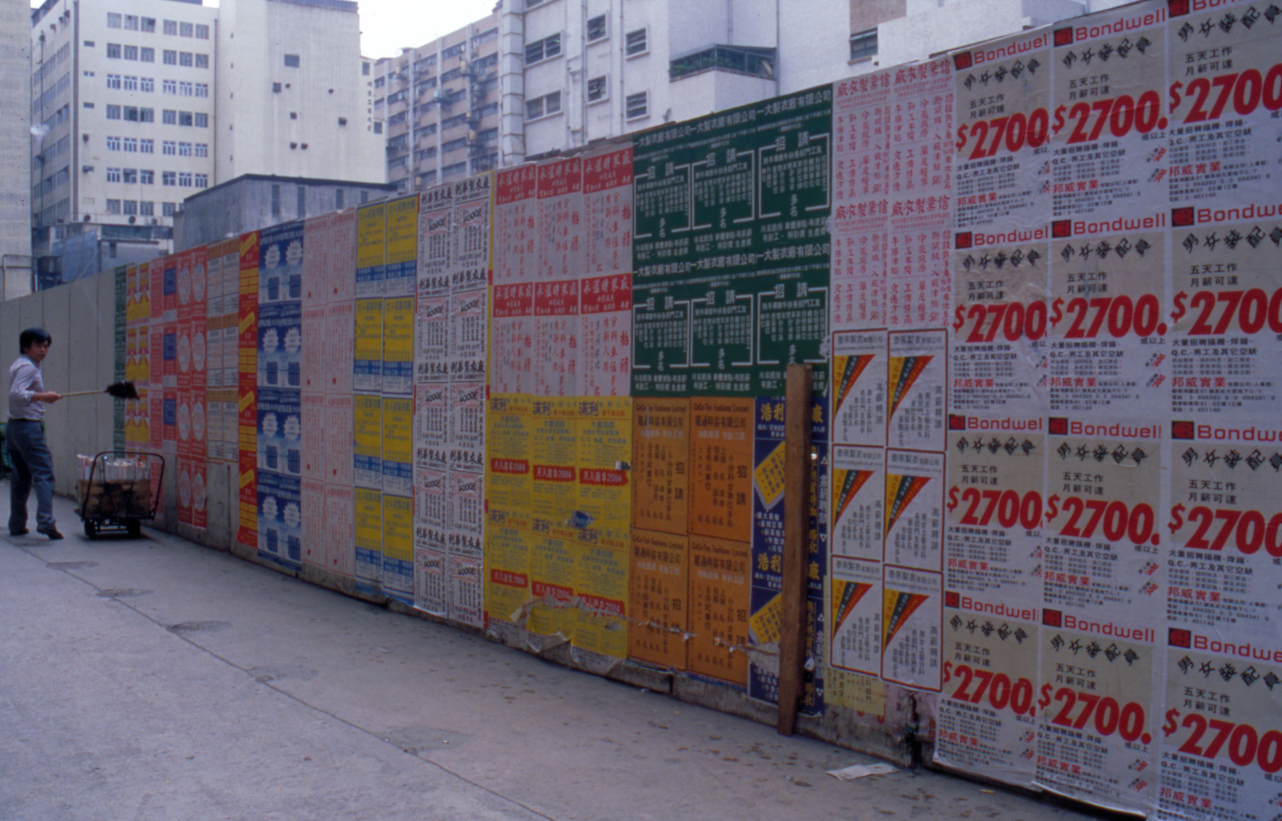 香港工作機會多,是賺錢的好地方,公司行號的招人啟事淹沒了建築工地圍牆。