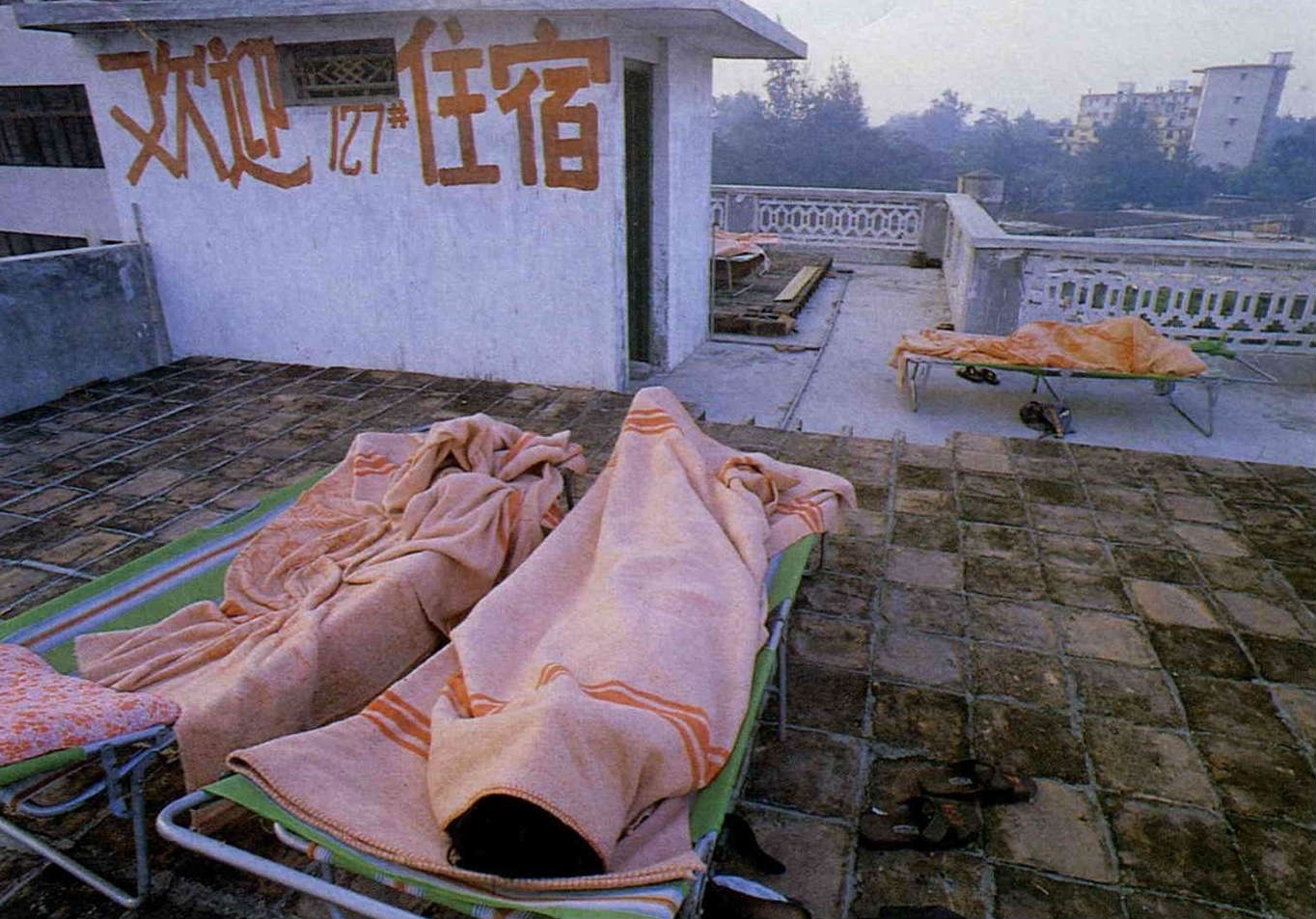 他們每個月的薪水是一百一十元人民幣(約合台幣八百元),扣除每餐一元的伙食費(招待所的同仁都在附近的一家食堂包伙,每餐有一大碗公的飯和只夠我們吃兩、三口的菜),其餘的錢則用來買煙和「國產」軟片。