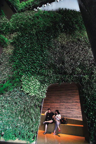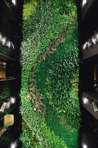 室內植生牆需要維護才能長得生氣盎然,目前大多設置在公共空間。圖為台北車站京站廣場。