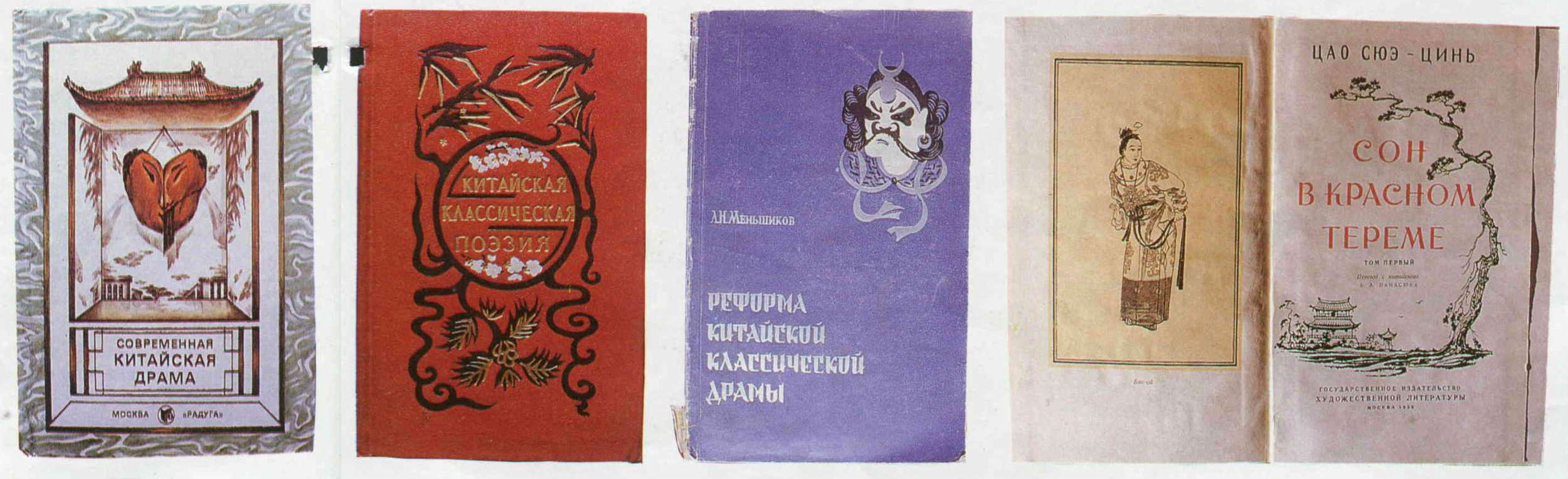 孟列夫與他的著作。下左至右為俄譯本謝瑤環、唐詩,及研究論文「中國戲曲改革」與紅樓夢。(張良綱)