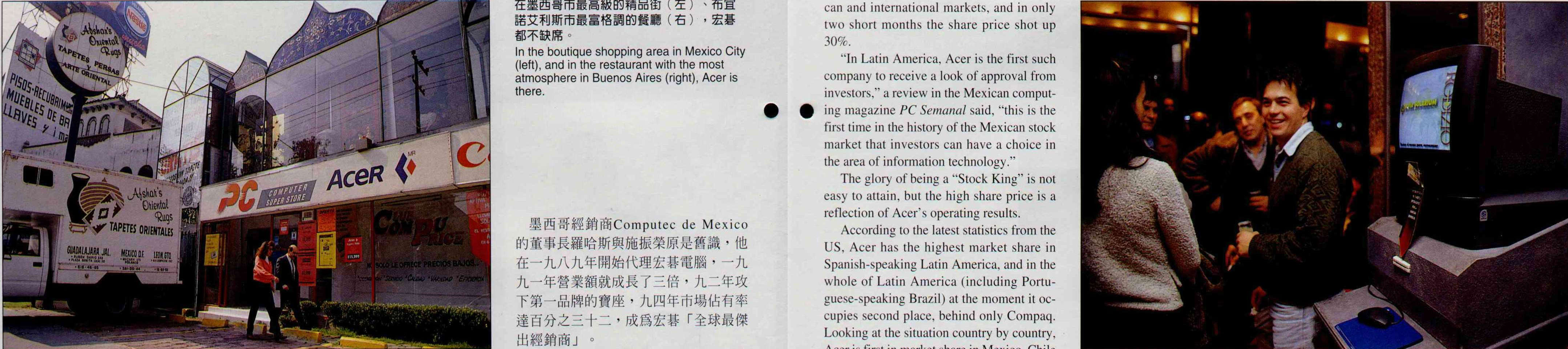 宏碁拉丁美洲公司股票在墨西哥上市後,有了在當地籌措資金的管道,如虎添翼,在整個中南美洲加速衝刺,不但買下巴西經銷商,成立子公司,搶攻這個中南美最大市場,也更放開大步,在拉丁美洲各國強力行銷。