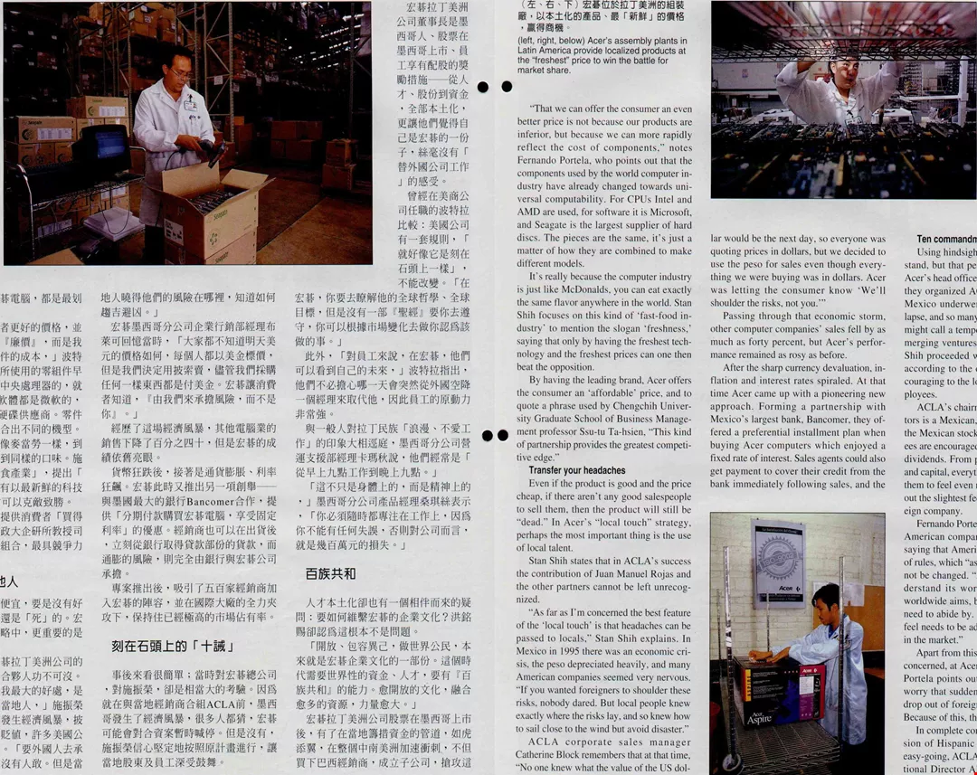「IBM、康百克是我們的競爭對手,但我猜他們也承認宏碁非常厲害,」宏碁拉丁美洲公司行銷經理古愛拉半開玩笑地加上一句:「而且非常怕我們。」