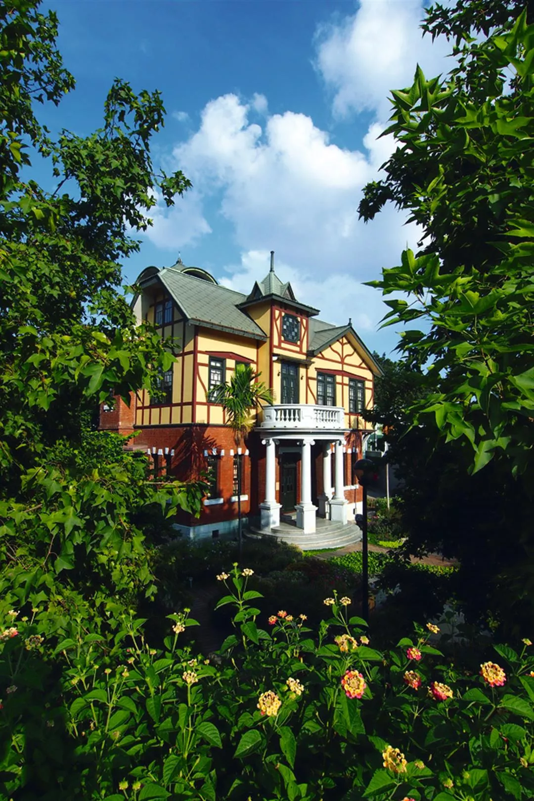 「圓山別莊」是大稻埕茶商陳朝駿所建,他利用這棟洋樓招待台灣仕紳與政要,也是各國茶商的聚會所,曾經詩社集結,藝妲穿梭,南管悠揚,沸水中徐徐舒展的茶葉與桂花齊飄香。