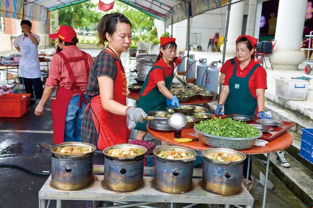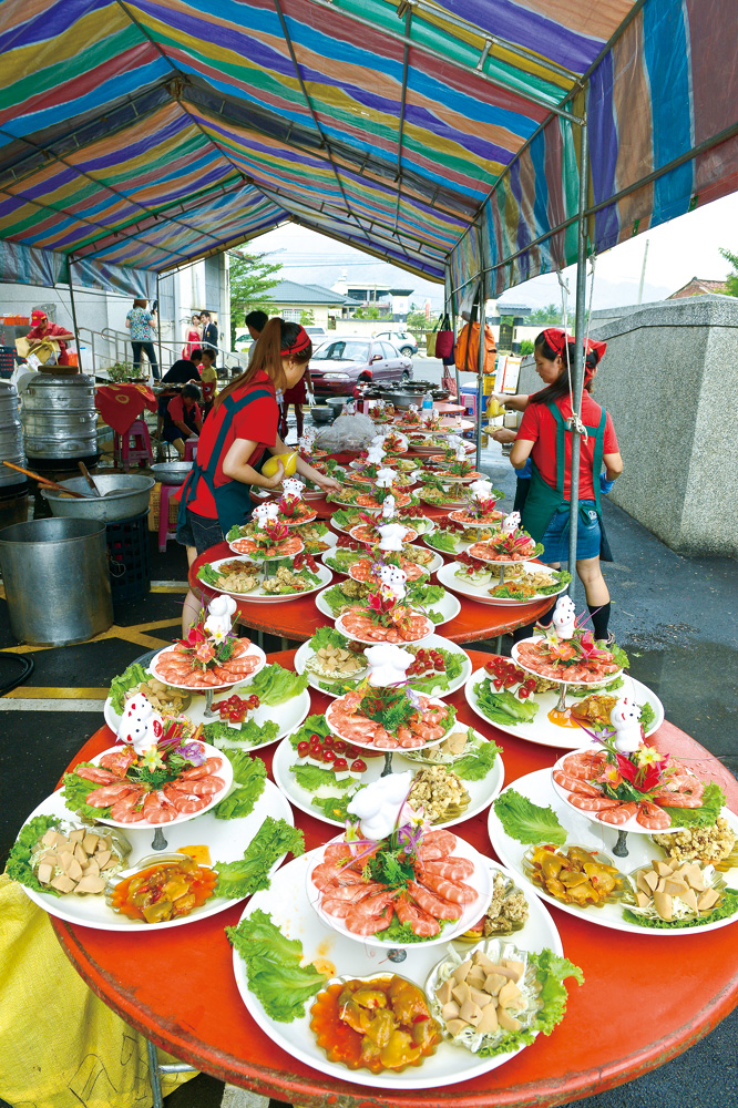 「常常客人的屁股還沒坐熱,就要趕到下一家去了,」黃碧恭說。為了省去客人奔波,早年設於家中的辦桌餐宴,後來才漸漸演變為每逢神明慶典,全村集於廟前盛大辦桌的熱鬧景況。